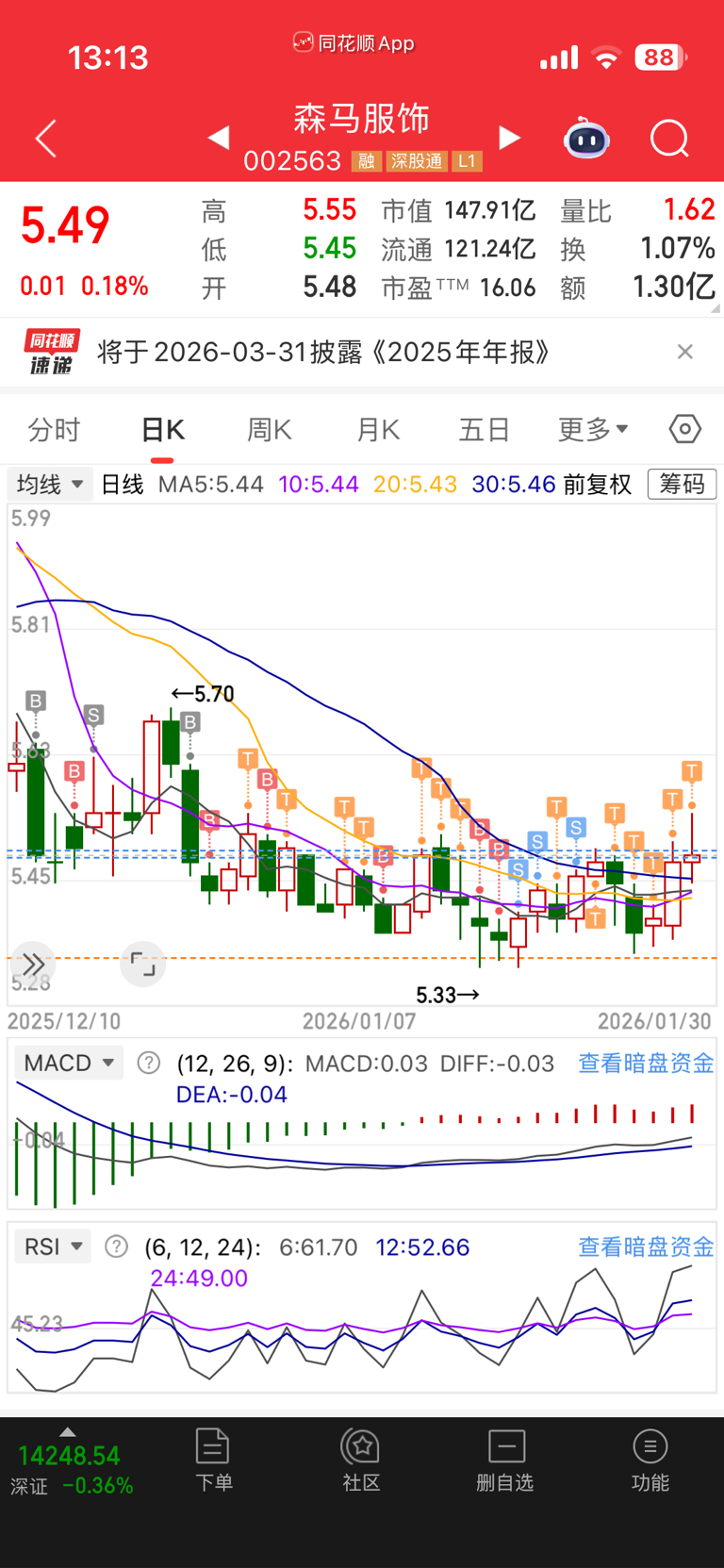 $森马服饰(SZ002563)$ 目前仓位1个亿,目标仓位5个亿……
