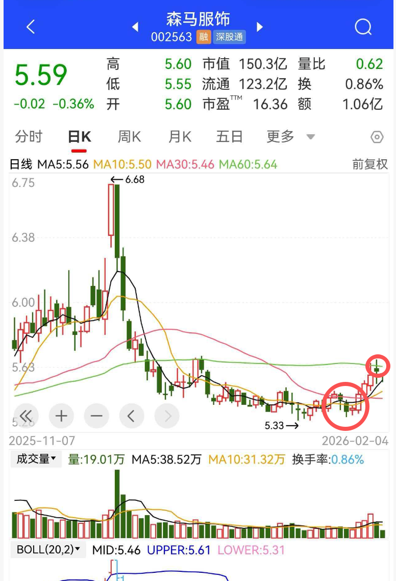 此股成功突破30日线(触碰3天,回调2天,突破1天),目前受60日压制(触摸2天),成功站上5.65后将一片坦途。