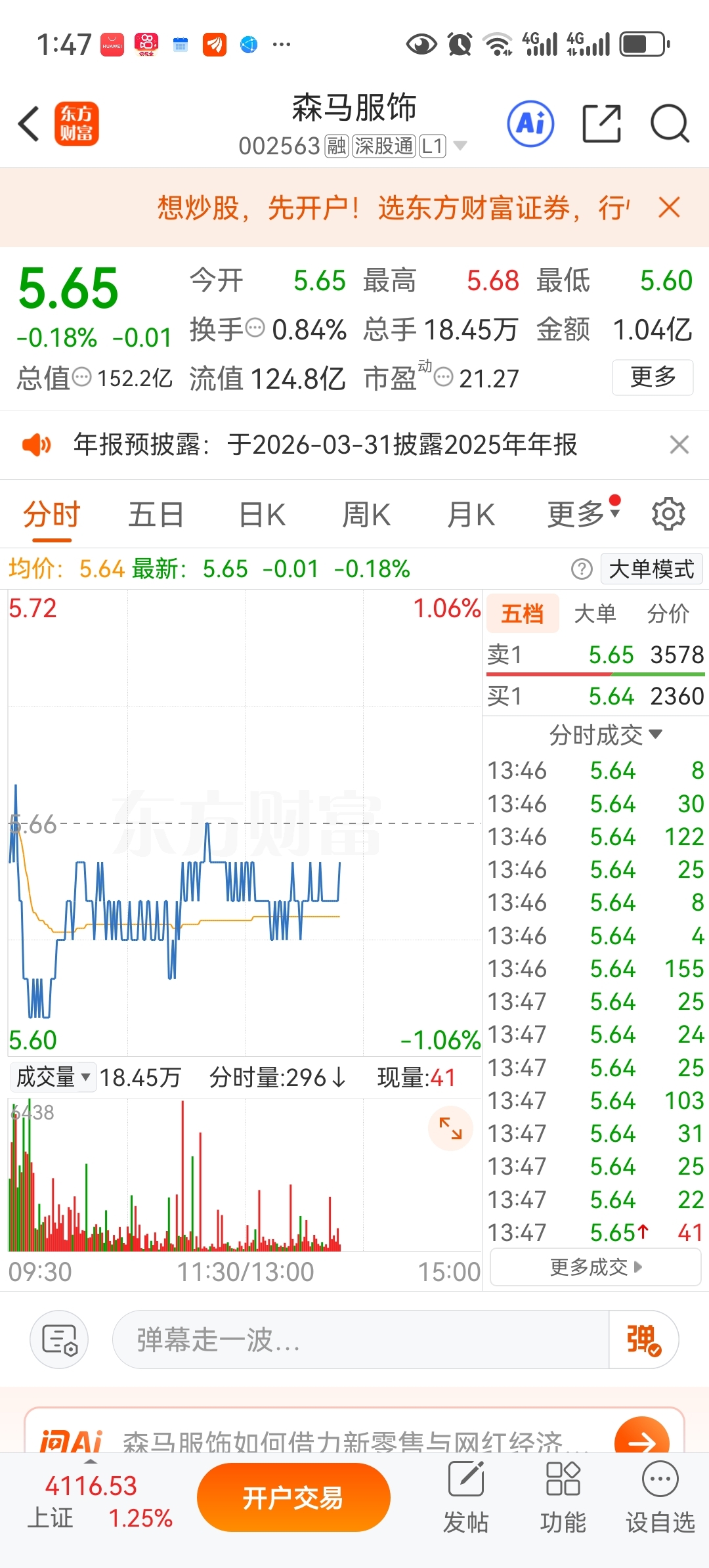 $森马服饰(SZ002563)$ 全是恶庄导演的小卖单,天女散花一般。