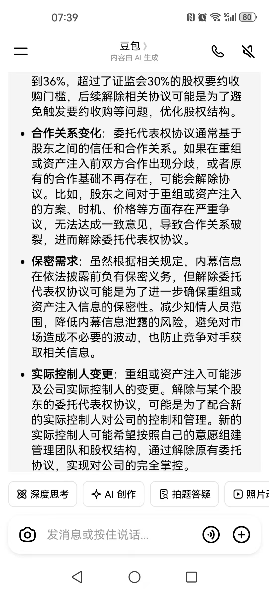 一句话,陈的表决权影响到了电气控股的投票决策。陈的股份加电气集团再加某个小股东就会超过电气控股。重大决策前的扫清障碍