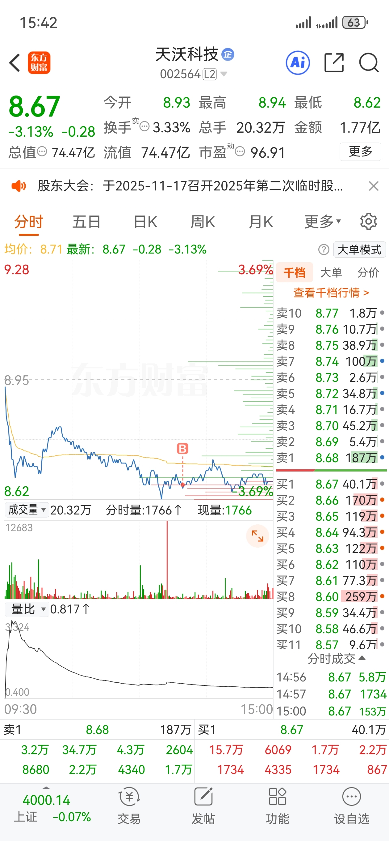 $天沃科技(SZ002564)$ 入点博明天反弹,如跌破60日线则快速卖出