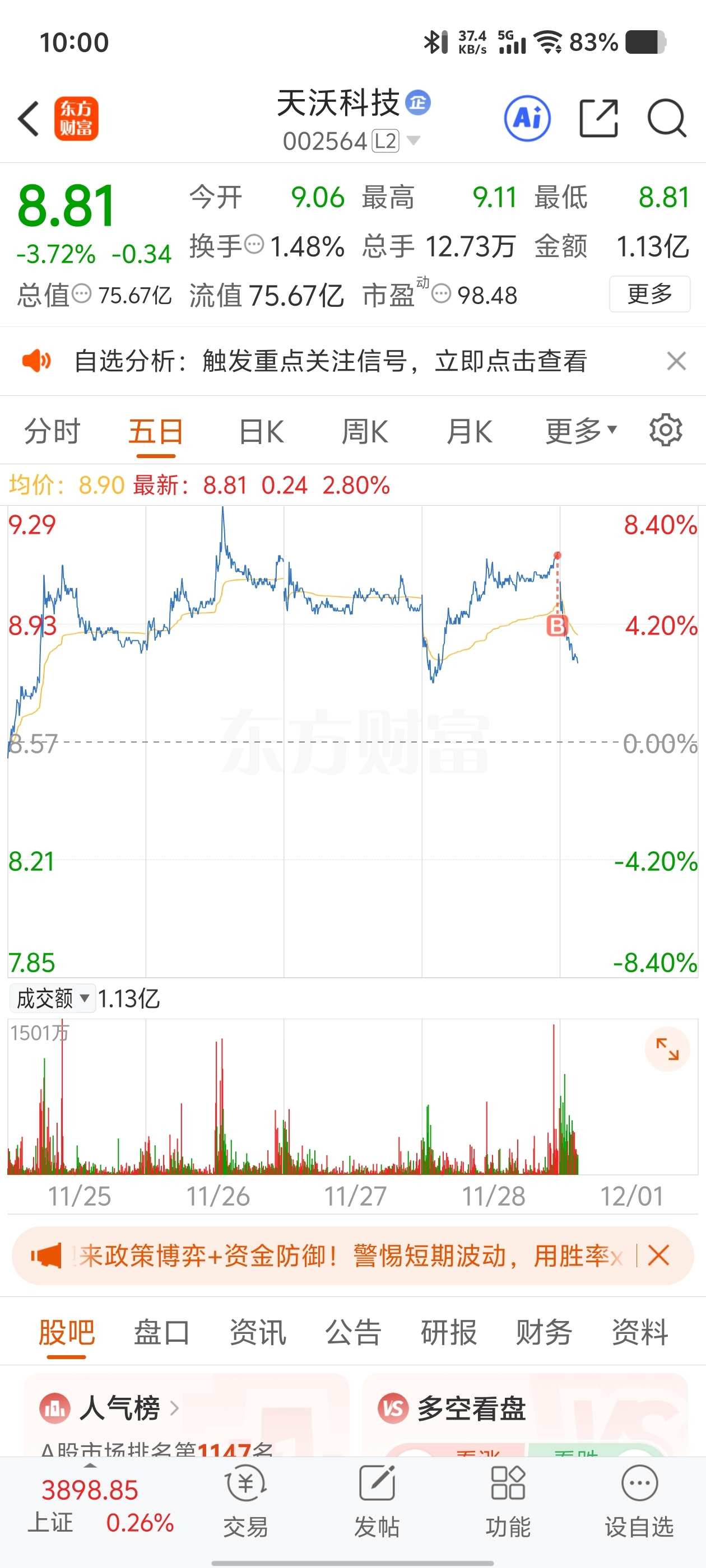 $天沃科技(SZ002564)$ 是我买崩了,对不起兄弟们