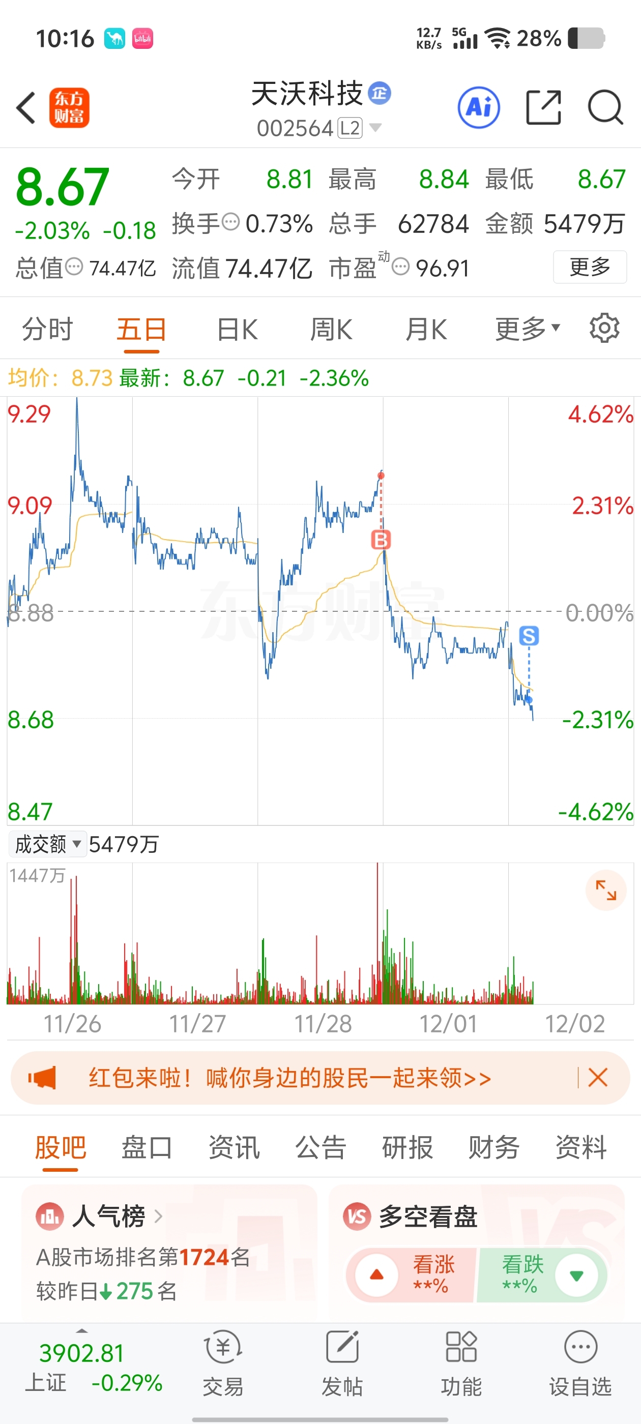 $天沃科技(SZ002564)$ 对不起,兄弟们我是韭菜我买崩了
