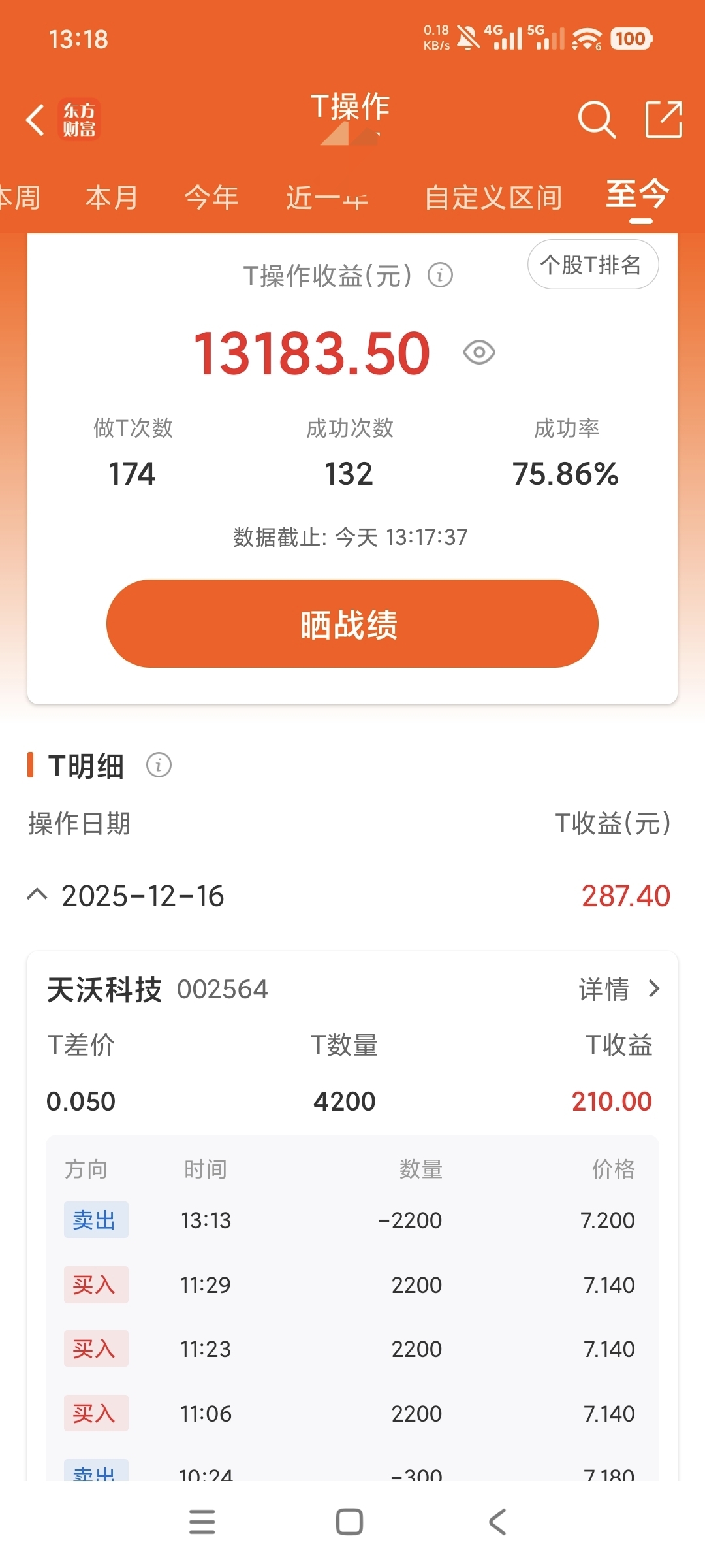 $天沃科技(SZ002564)$ 今天天沃科技做T赚了一顿饭钱