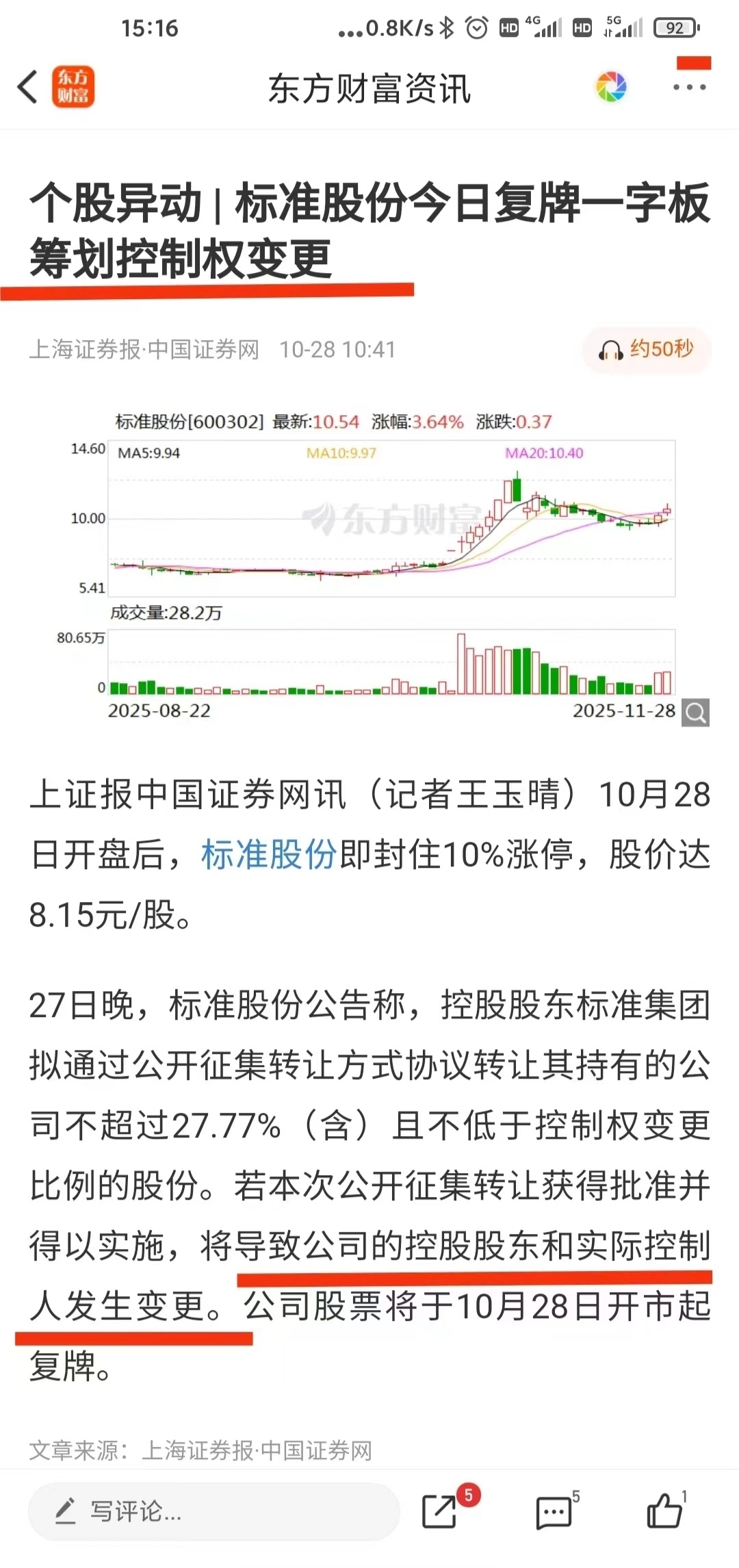 标准股份,已公告:马上就要重大重组.!史上最明确重组股,盘小,该翻五倍以上了!而且省zf也大力支持重大重组,最明确,速度也会非常快$襄阳轴承(SZ000678)$ $平潭发展(SZ000592)$