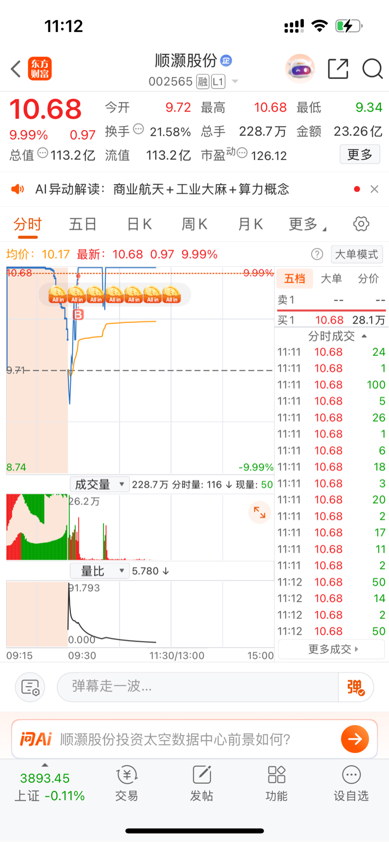 $顺灏股份(SZ002565)$ 冲就完了,谁强就上谁,轮动行情你一天它一天我就给你转