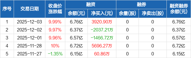 融资方面,当日融资买入2.23亿元,融资偿还1.84亿元,融资净买入3920.9万元。融券方面,融券卖出0股,融券偿还0股,融券余量0股,融券余额0元。融资融券余额合计6.76亿元。