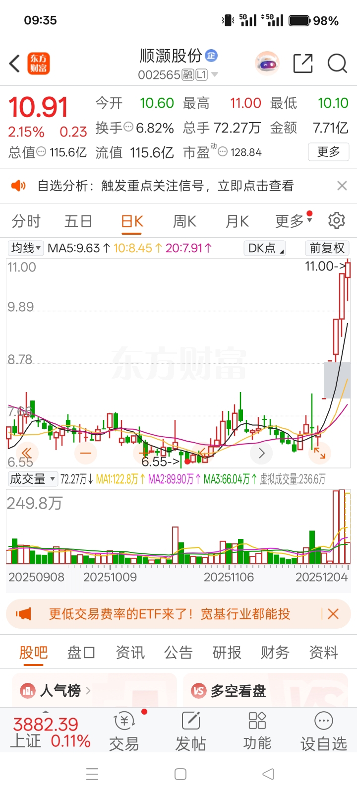 $顺灏股份(SZ002565)$ 现价进,强者恒强