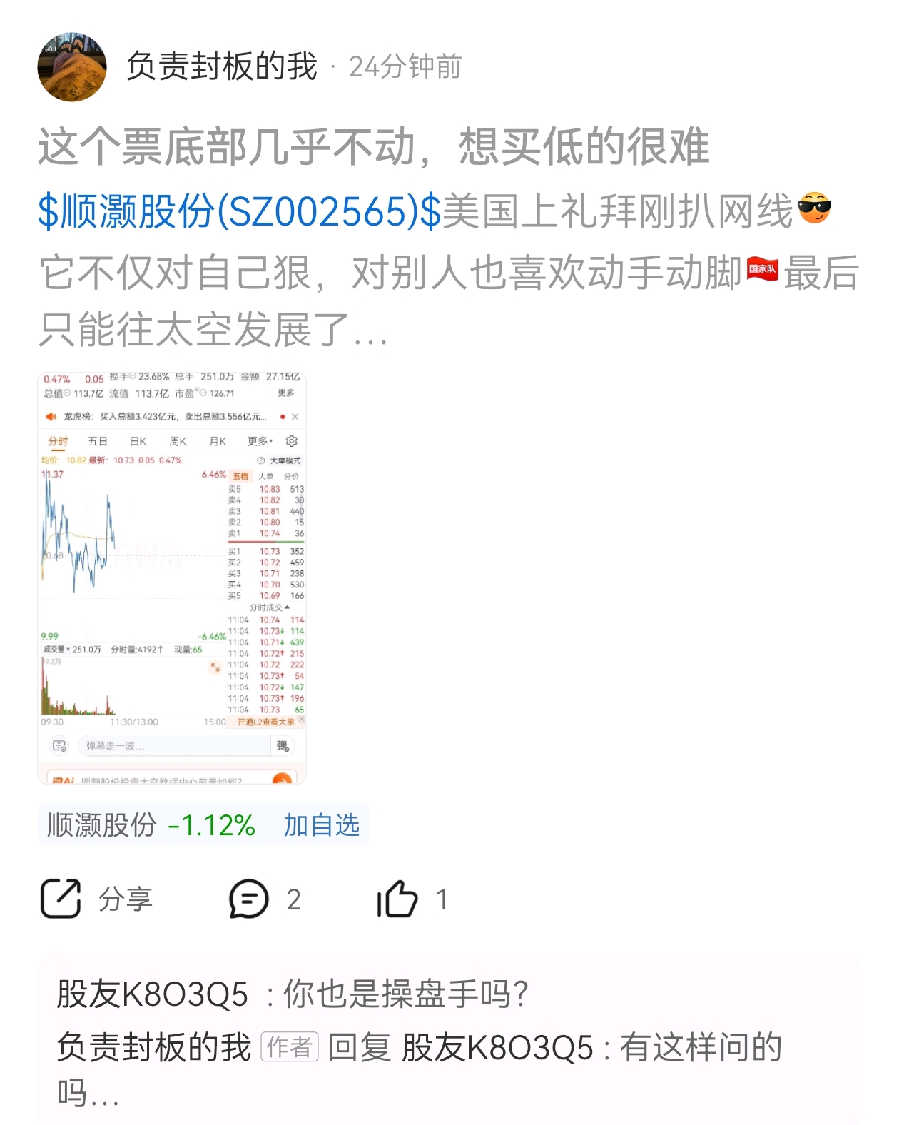 温馨提示: 1.根据《证券法》规定,禁止编造、传播虚假信息或者误导性信息,扰乱证券市场;2.用户在本社区发表的所有资料、言论等仅代表个人观点,与本网站立场无关,不对您构成任何投资建议。用户应基于自己的独立判断,自行决定证券投资并承担相应风险。《东方财富社区管理规定》