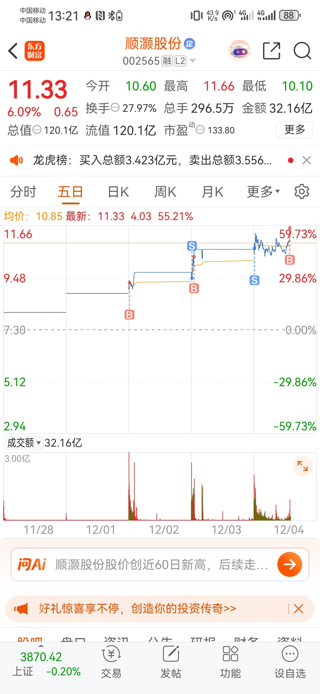 $顺灏股份(SZ002565)$ 糊涂啊,sb战法,太惨了