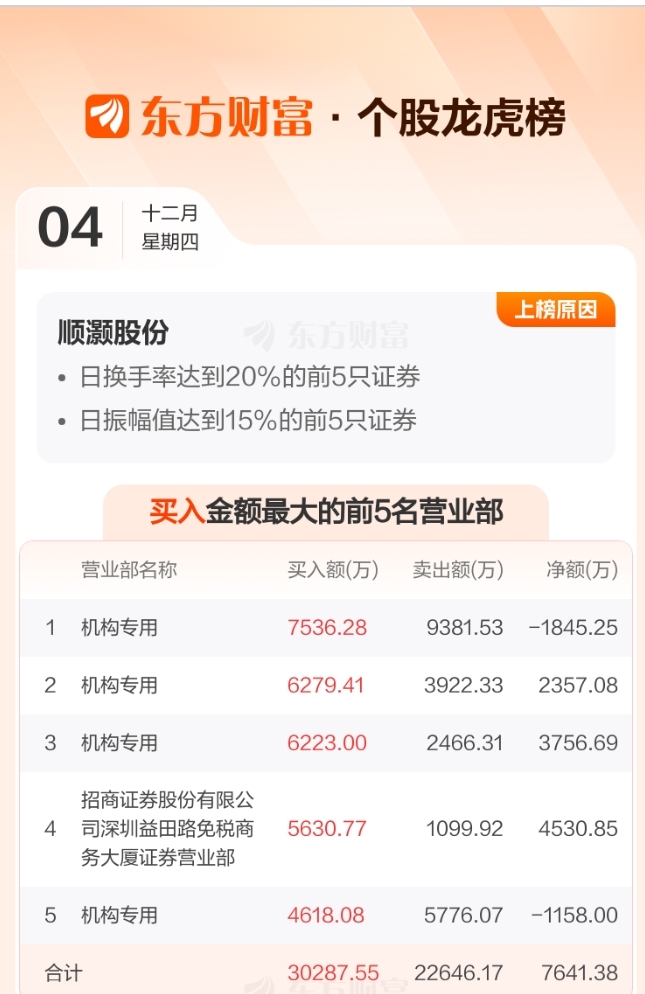 $顺灏股份(SZ002565)$ 遇强则强,登上龙虎榜,今天进了的朋友,切勿担心,继续等待指令,
