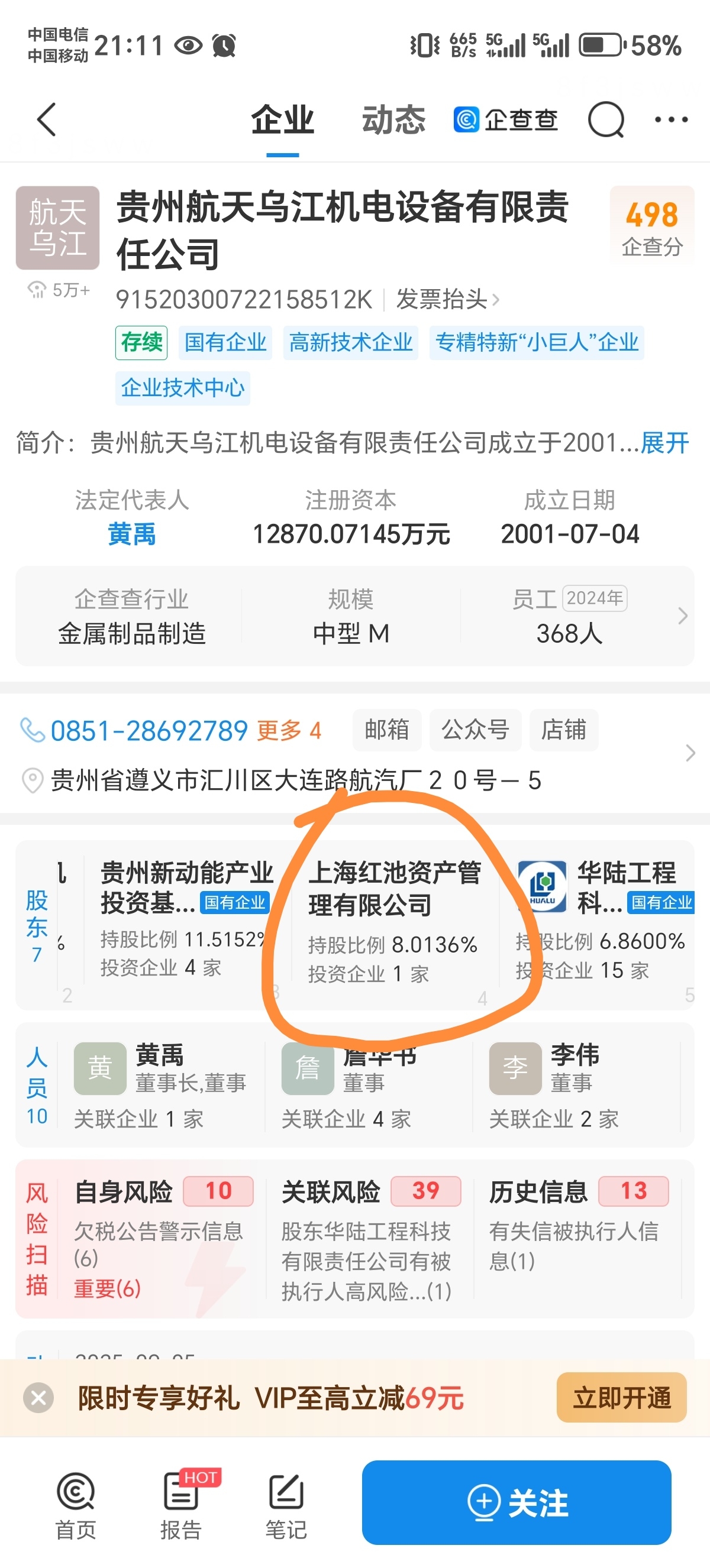 其控股子公司上海红池资产管理有限公司于2019年对该公司进行了投资,截至2025年9月,仍持有其8.0136%的股份 。