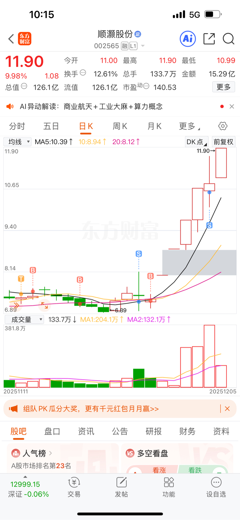 $顺灏股份(SZ002565)$ 航天算力龙头被我卖飞了,祝兄弟们周一一字板大肉!