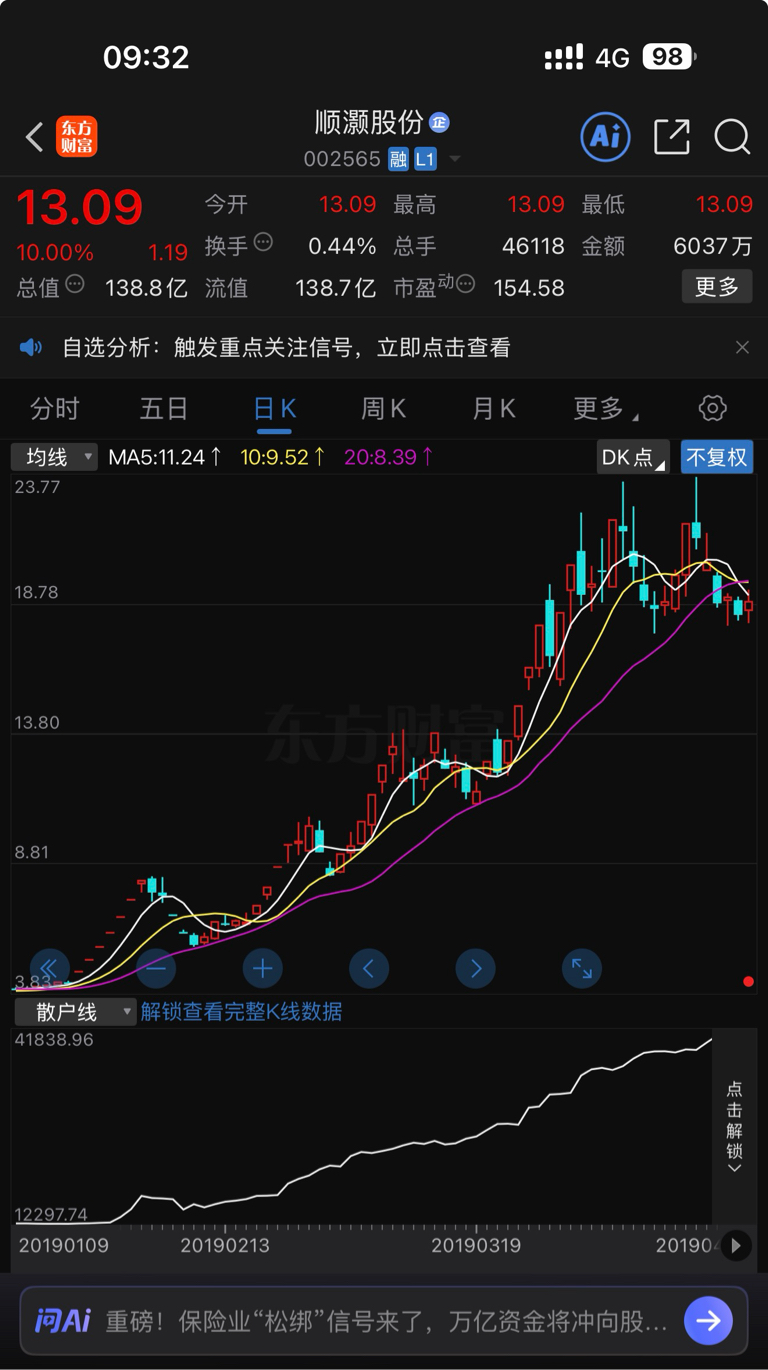 $顺灏股份(SZ002565)$ 难道真的往20奔了???太像19年的趋势了