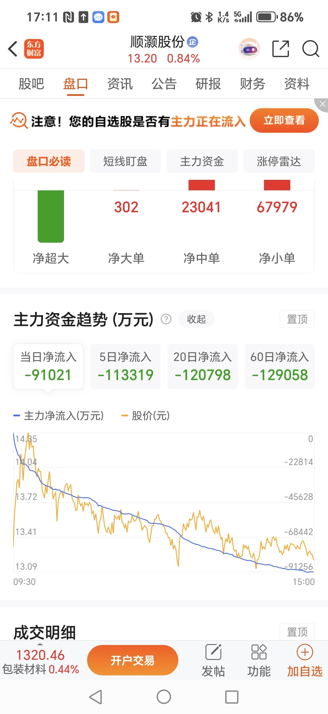 $顺灏股份(SZ002565)$ 出了一天货,净流出快十个亿,明天能起来才怪呢