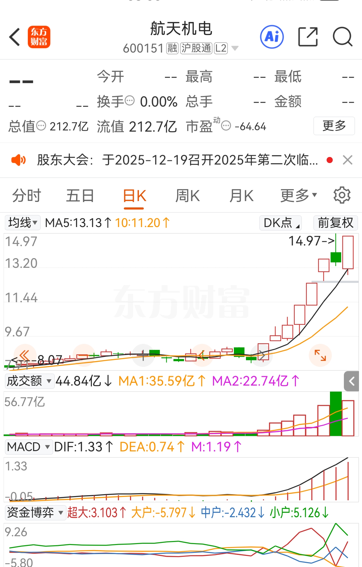 航天机电也可以啊第二天就反包不破5日线。顺灏按理说和航天机电这俩兄弟是为数不多正