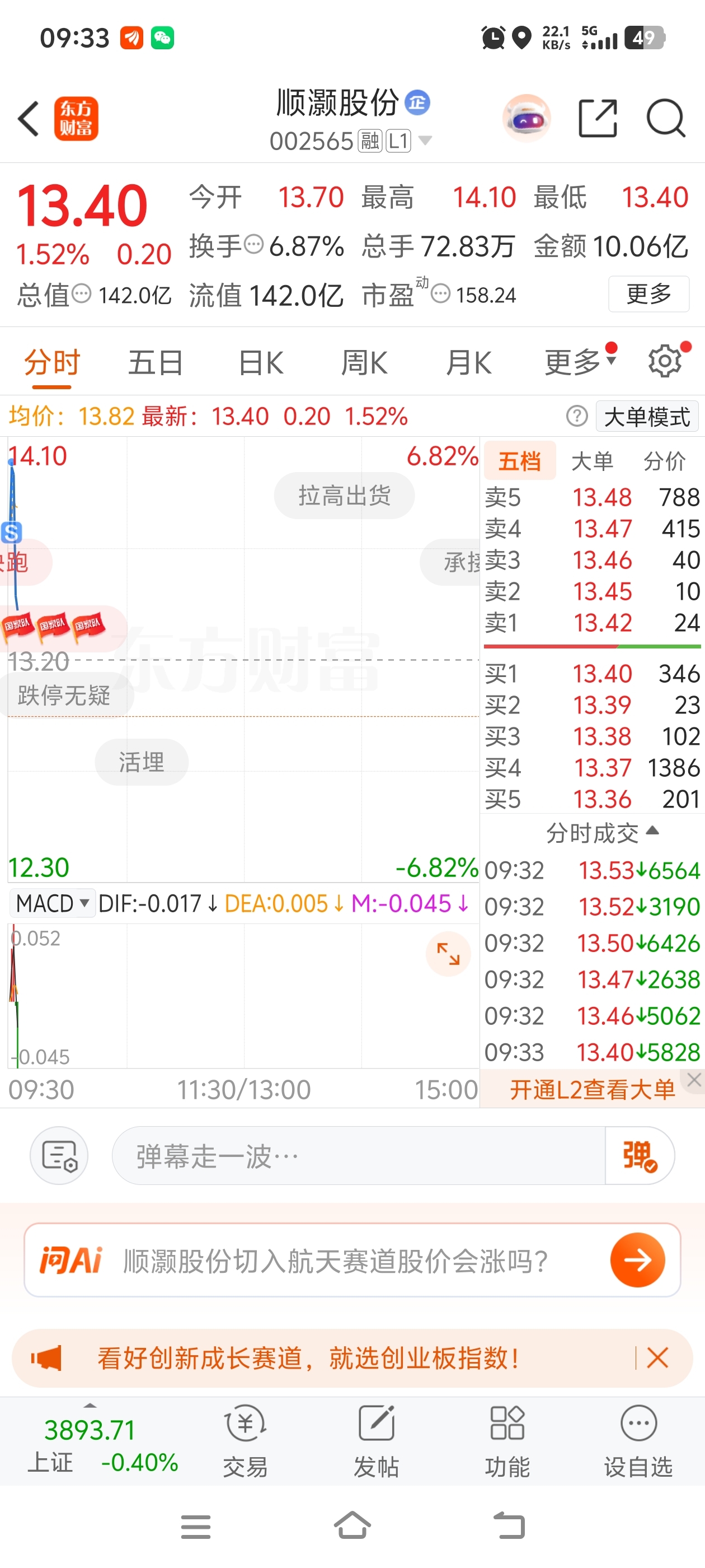 $顺灏股份(SZ002565)$ 差不多就行了。