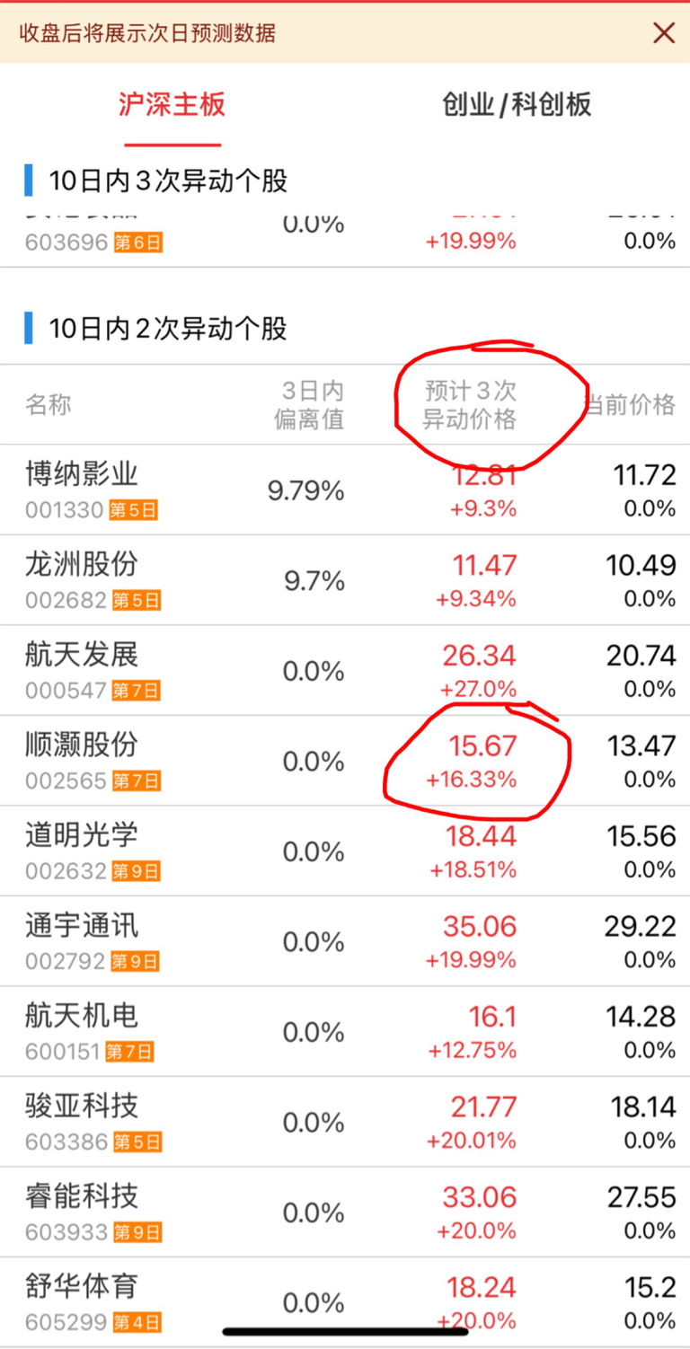 $顺灏股份(SZ002565)$ 今天和昨天涨超8%多,就是触发第三次异动,所以每次上去都没人封板,这两天全都0%,异动清空,之后涨停就不会触发异动,是这个意思。