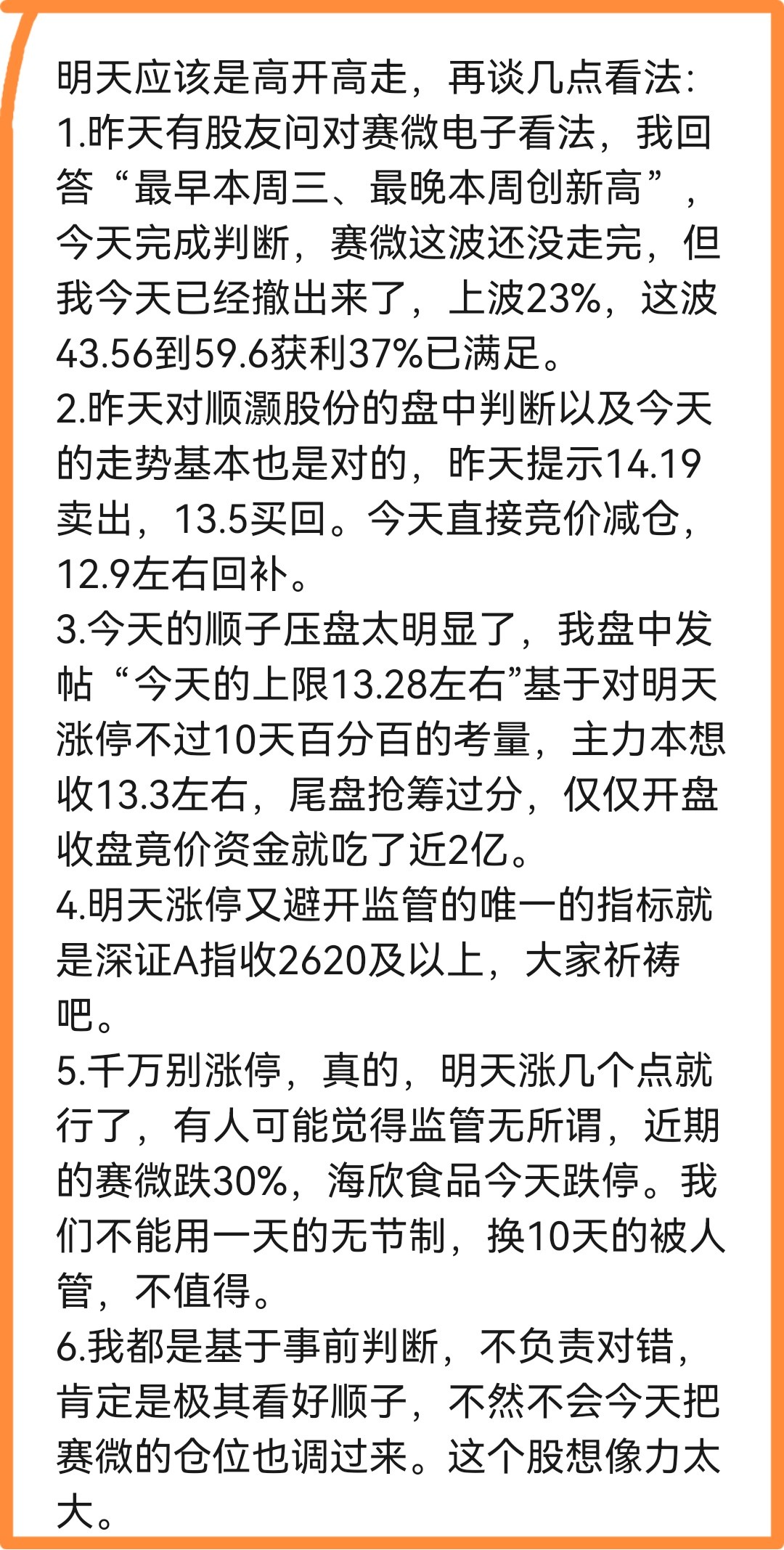 美卫通股涨上了天,顺灏应是高开妙板。祈祷深证A指收2620及以上吧,否则进监管了