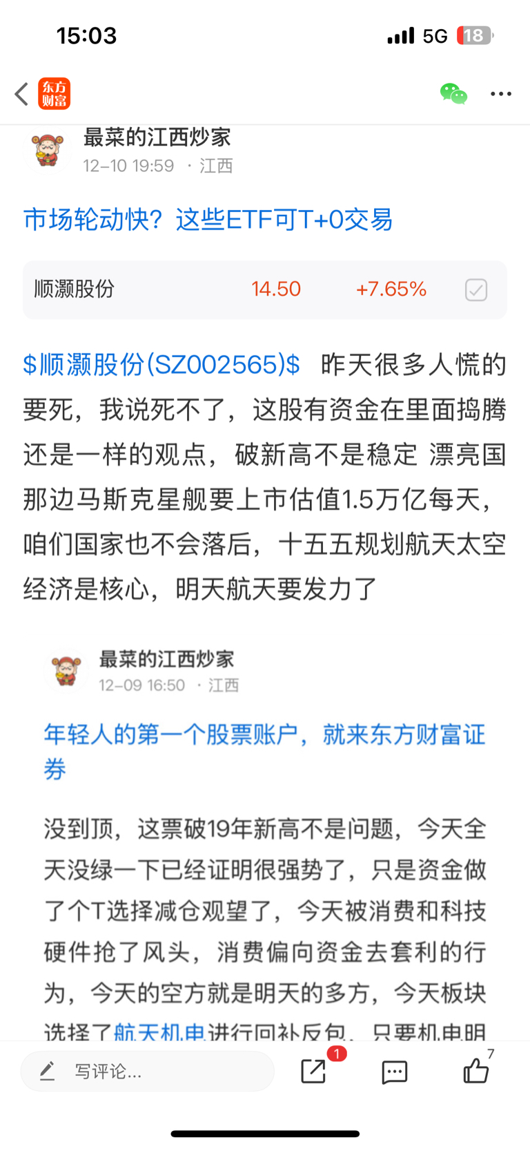 $顺灏股份(SZ002565)$ 连续三天精准预测,还是那句话 坚定信心,三天前都说了这股没到头 新高不是问题,相信三天前很多追高的朋友,希望你们没被洗下车,今天成功卡主异动,尾盘抢筹1.4亿,明天可以肆无忌惮发力了,明天如果秒板,那么恭喜 跨年大妖就是它了!