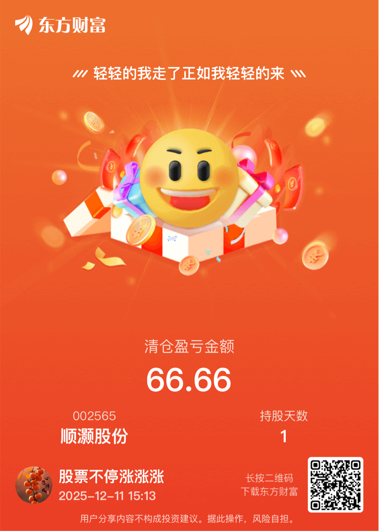 $顺灏股份(SZ002565)$ 水下一个点就卖了,得了六六大顺,手痒进的百货,两头被打!羡慕一直拿着的兄弟