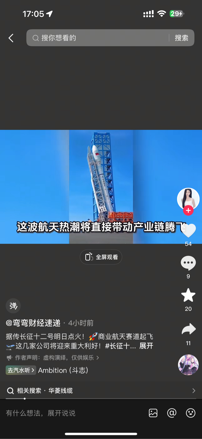 明天上午长征12甲可回收火箭发射,这个月密集发射的火箭会带动商业航天,给我攒下我