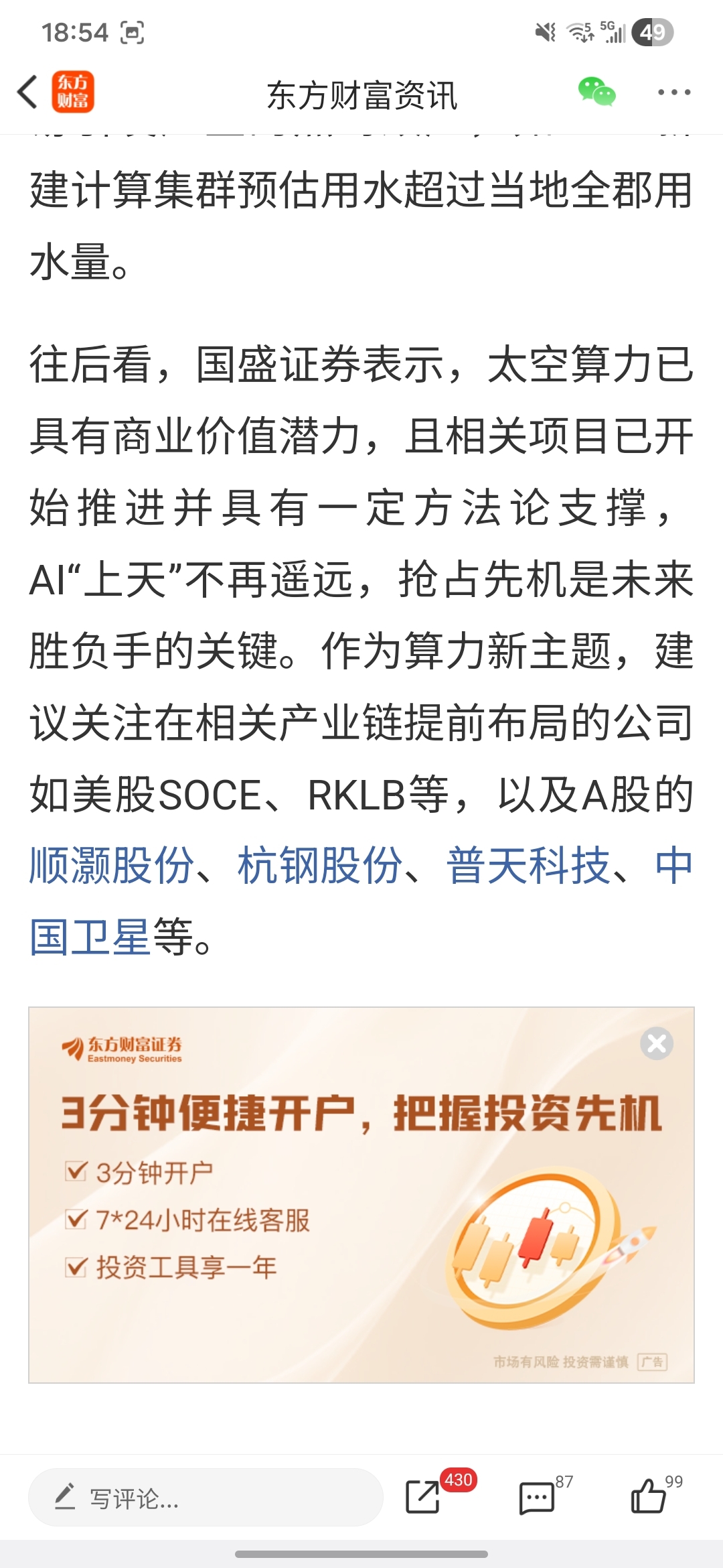 温馨提示: 1.根据《证券法》规定,禁止编造、传播虚假信息或者误导性信息,扰乱证券市场;2.用户在本社区发表的所有资料、言论等仅代表个人观点,与本网站立场无关,不对您构成任何投资建议。用户应基于自己的独立判断,自行决定证券投资并承担相应风险。《东方财富社区管理规定》