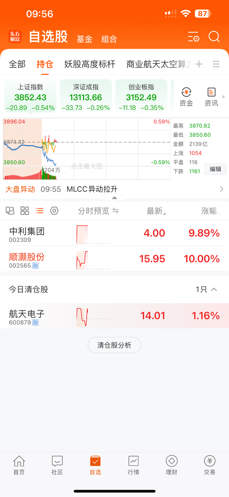 $顺灏股份(SZ002565)$ $中利集团(SZ002309)$ 今天全部打满了,切换到核心,一个是最高,一个接近最低,如果下午吃面条也没办法了