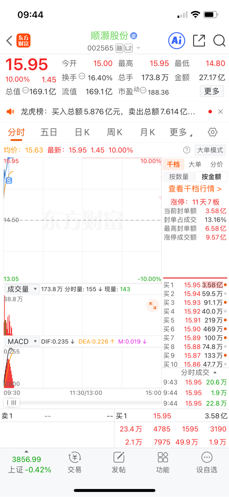 $顺灏股份(SZ002565)$ 各位大神,今天我卖飞了,因为我昨天看到开盘啦有异动提示,今天涨幅8.95%就要被监管,但是涨停后居然没异动了?这是怎么换算的,是什么公式算的?还请各位老师不吝赐教!谢谢祝老师