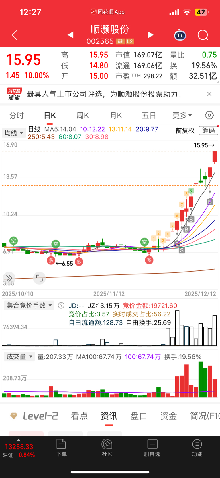 $顺灏股份(SZ002565)$ 几十亿的交易盘就不要顶一字板了吧,容易死,不然就得是100亿封单起或者不爆量T字,虽然持有但是不无脑吹