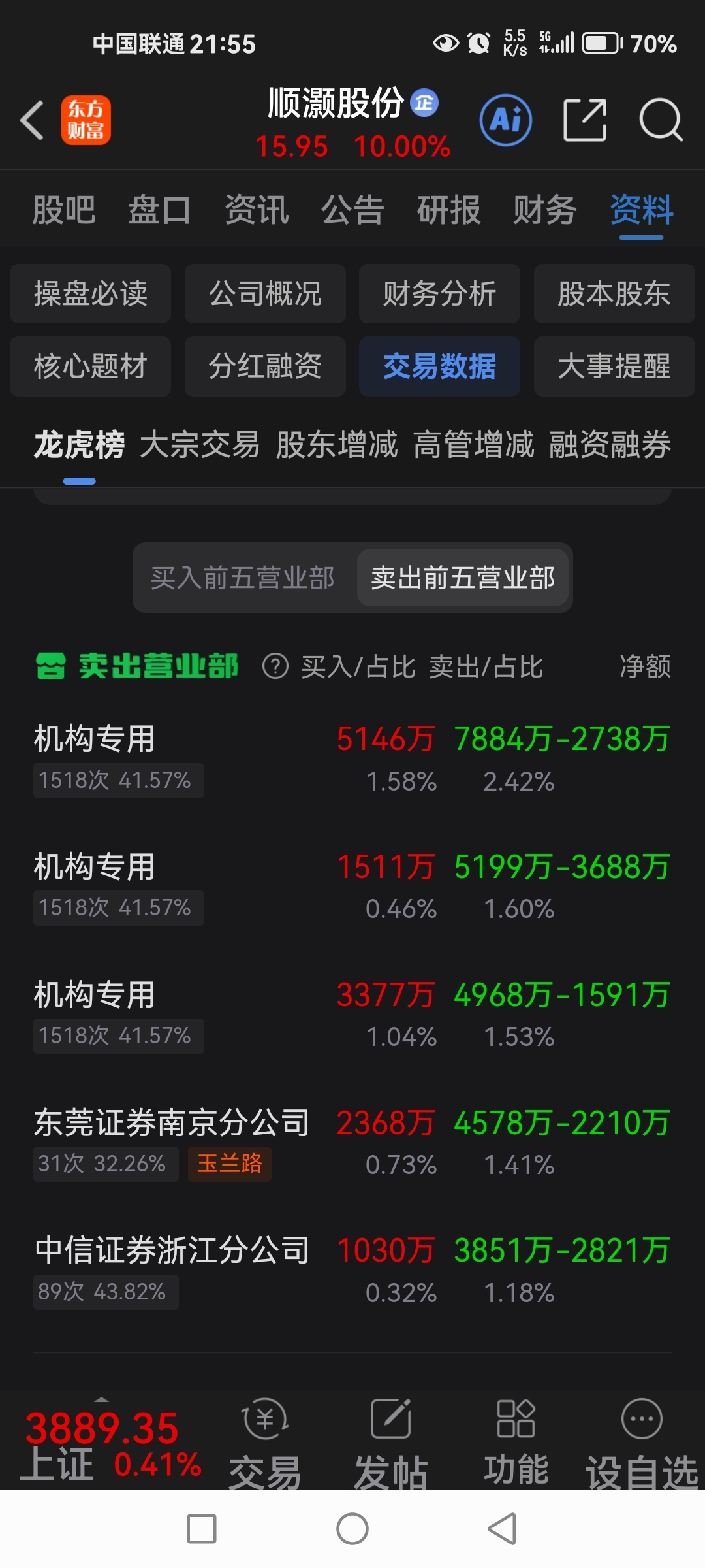 $顺灏股份(SZ002565)$ 机构跑路估计到顶了