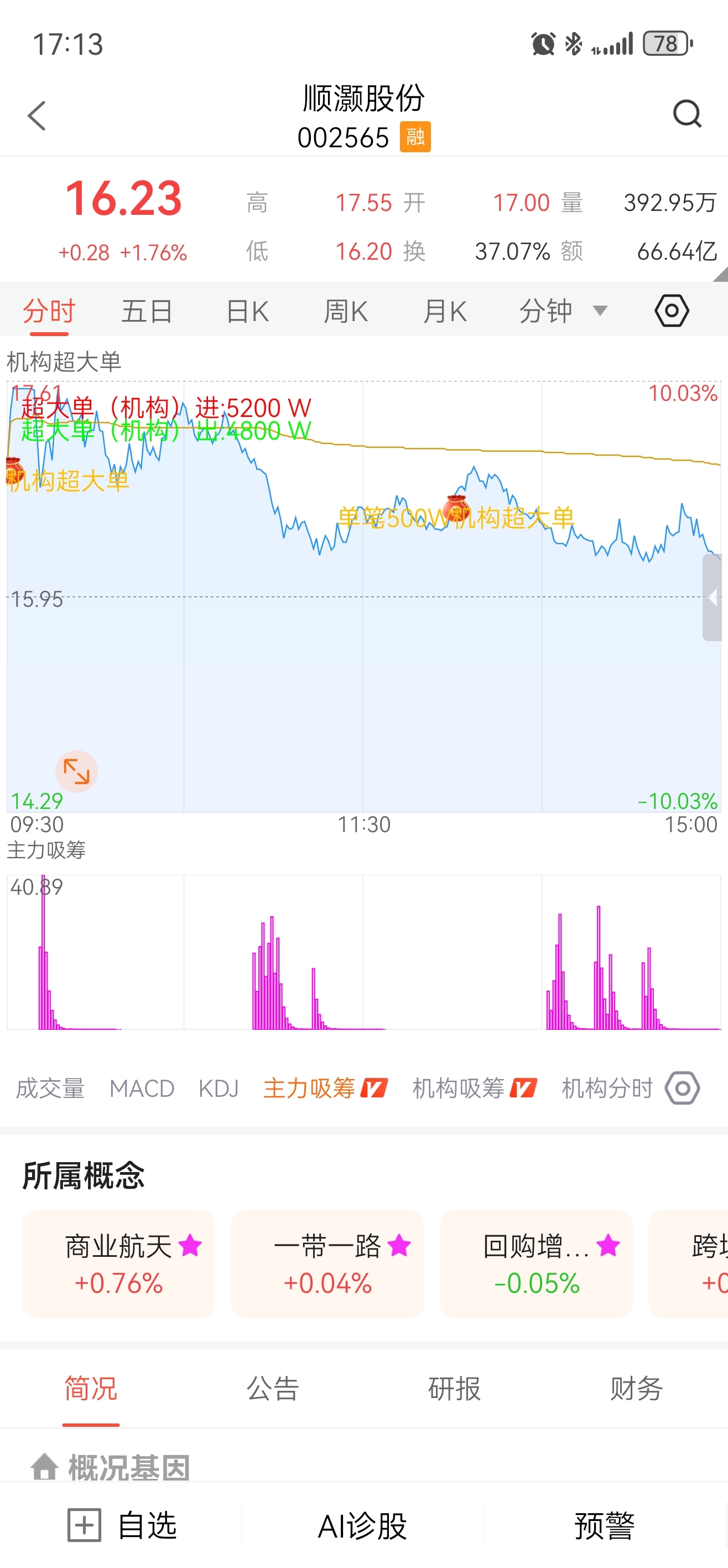 $顺灏股份(SZ002565)$ 奶奶的主力吸了一天。。。。