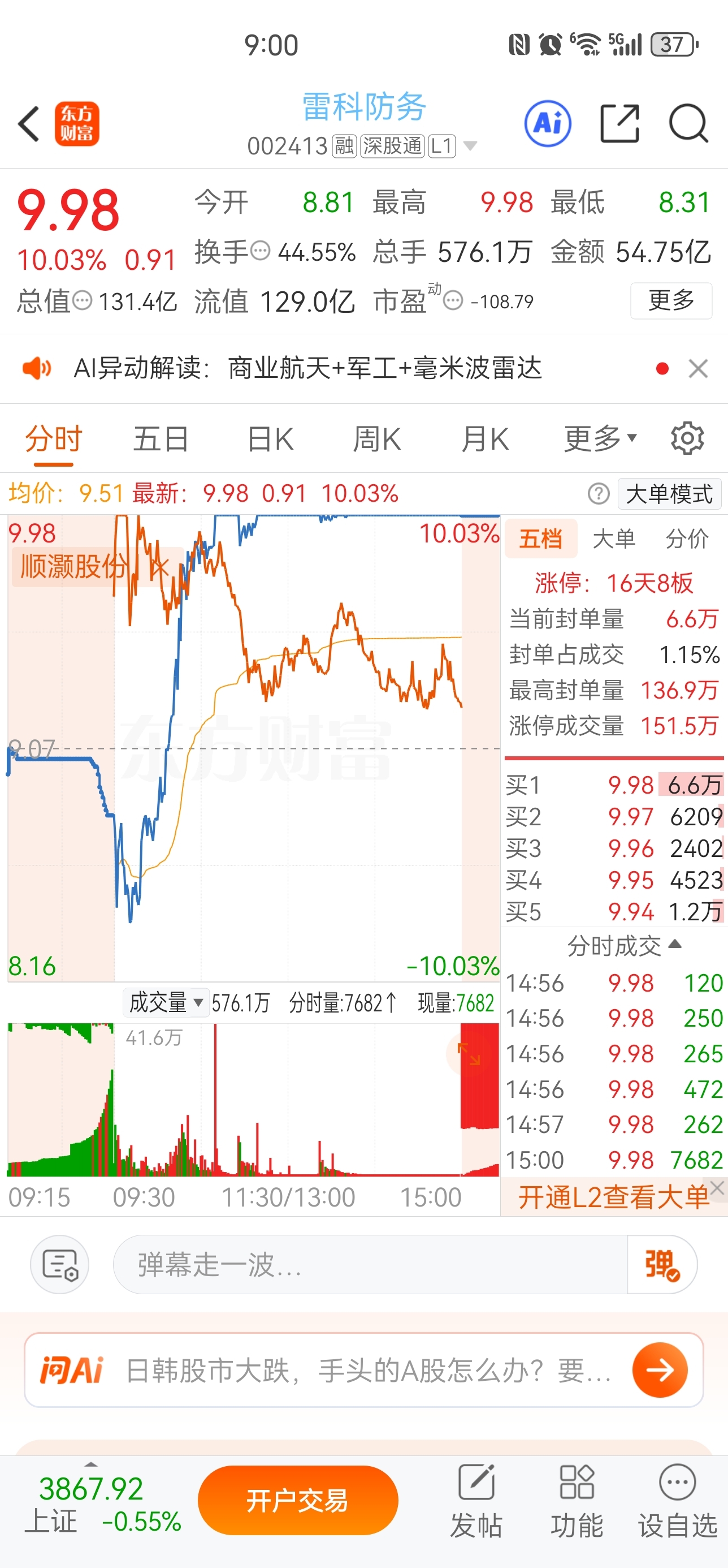 $顺灏股份(SZ002565)$ 被卡了