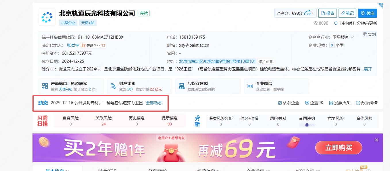 轨道辰光的算力卫星2个专利申报成功,国家专利局网站已公告。