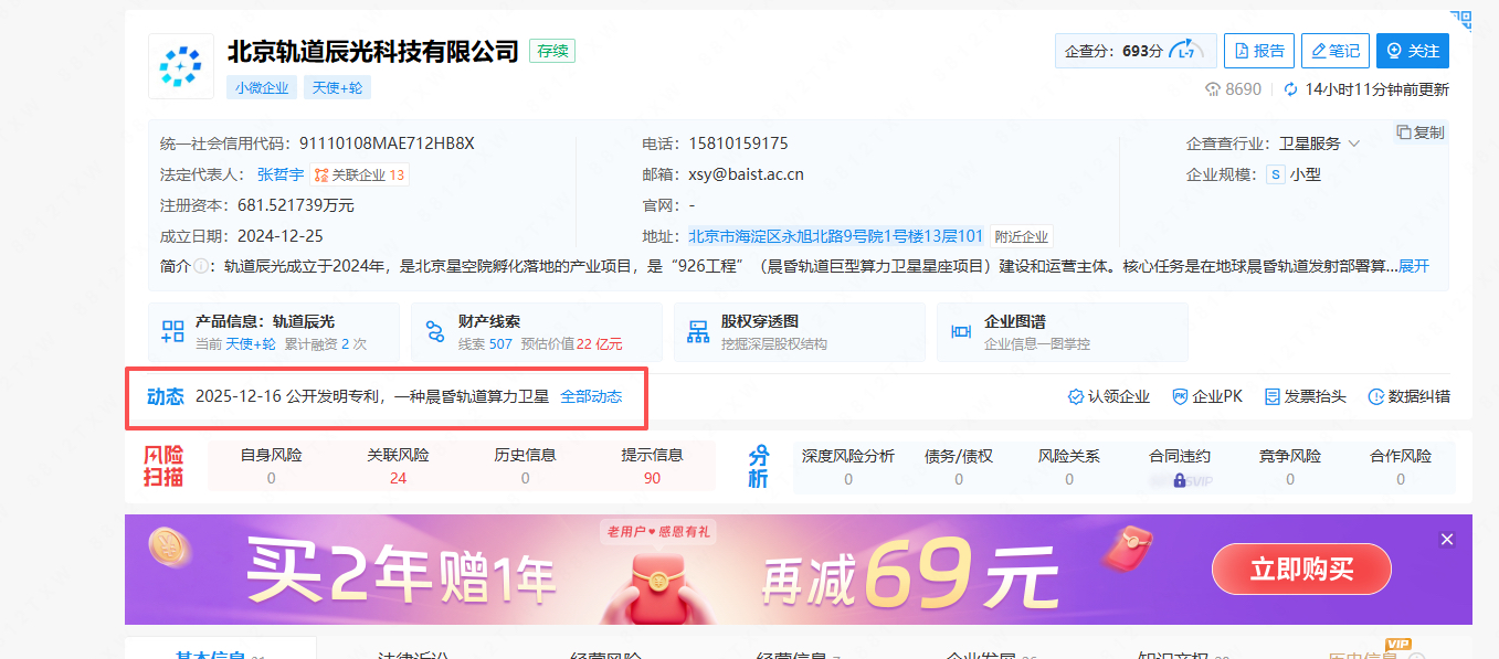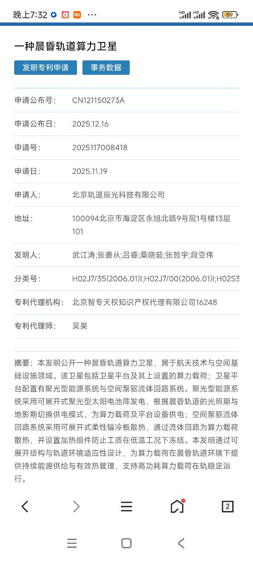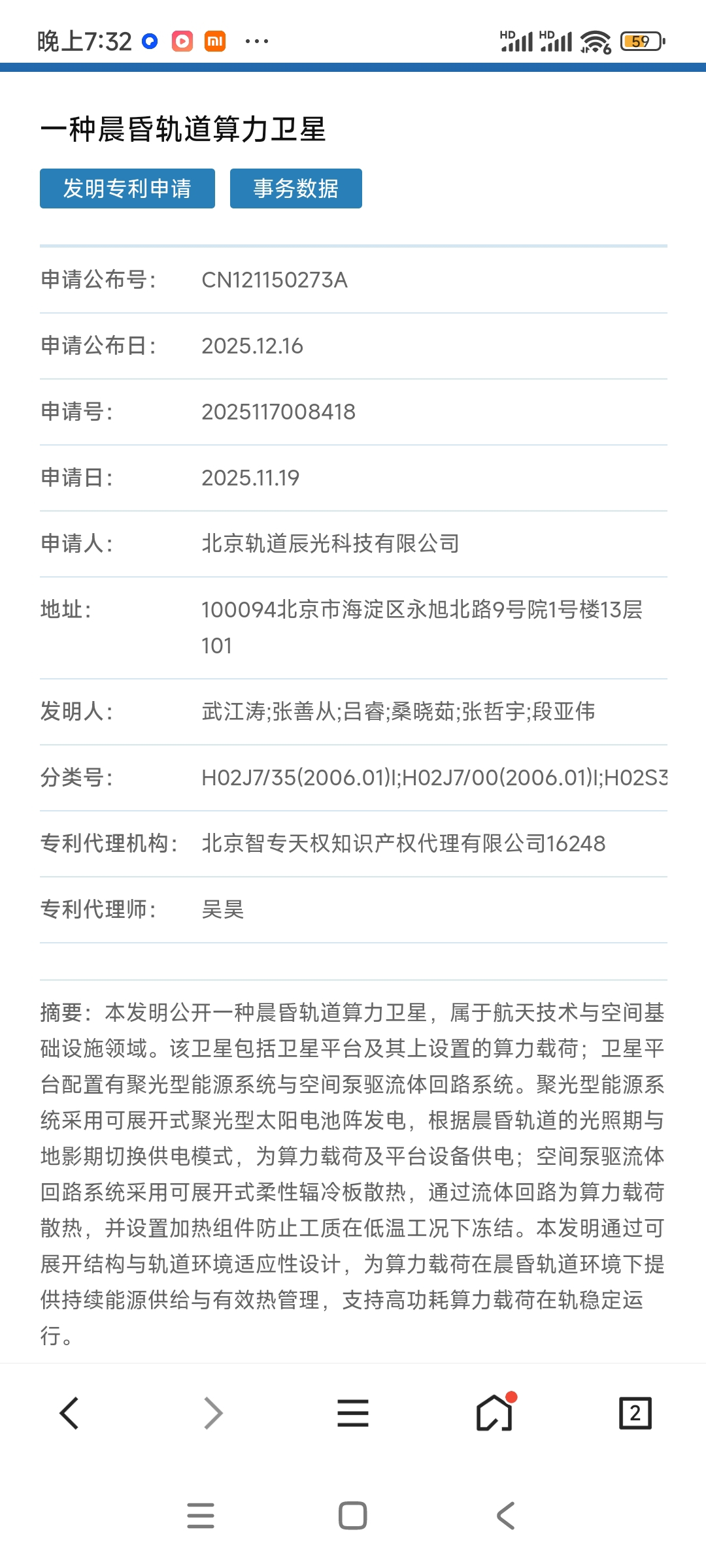 轨道辰光这家公司的主要业务是通过将算力卫星发射至晨昏轨道,组建太空数据中心,为客户提供算力服务,其经营范围包括微小卫星生产制造、微小卫星科研试验、互联网信息服务等。
