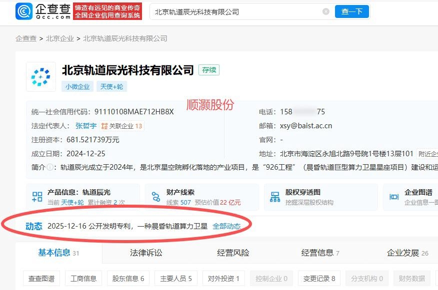 顺灏股份轨道辰光公司今晨发布了两大专利!都和商业航天、太空算力有关!建议加仓补仓