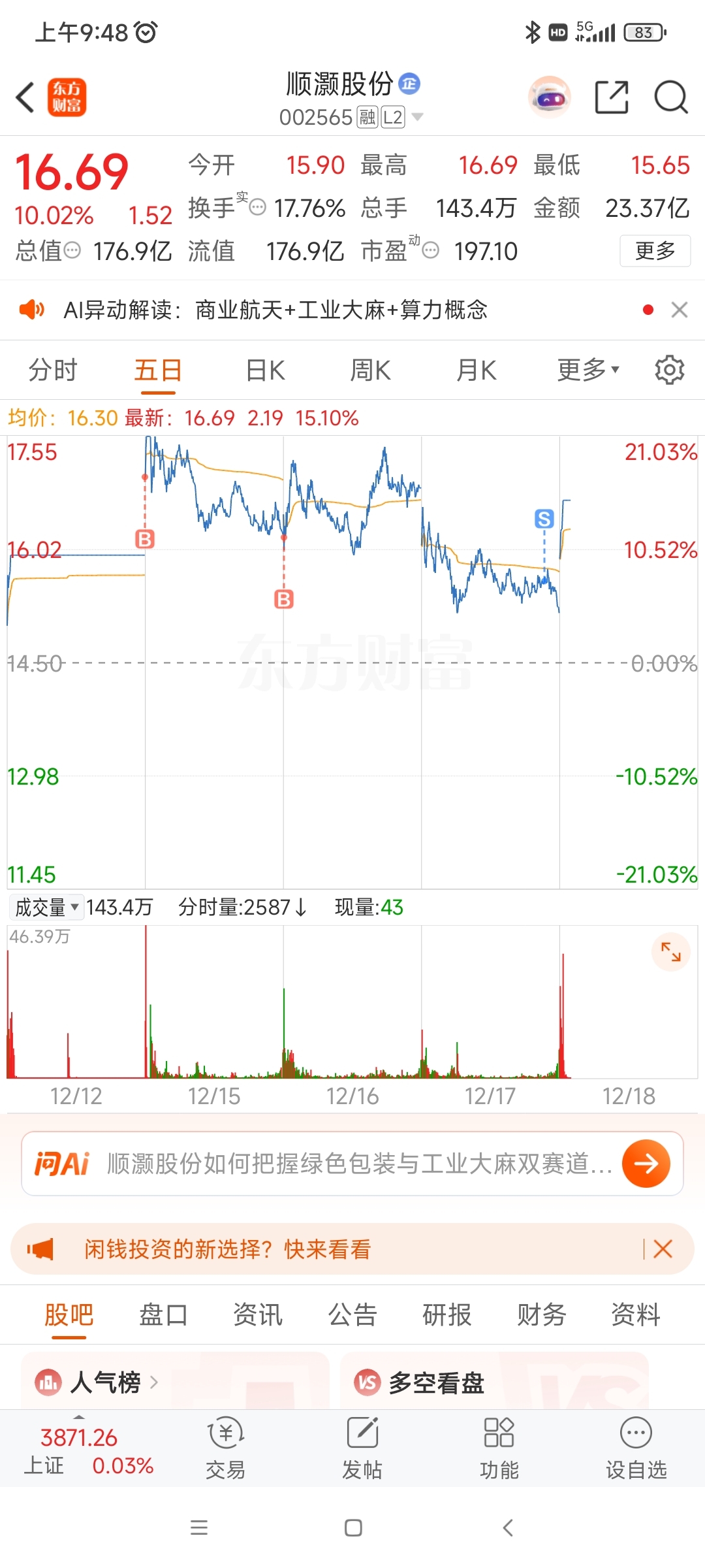 温馨提示: 1.根据《证券法》规定,禁止编造、传播虚假信息或者误导性信息,扰乱证券市场;2.用户在本社区发表的所有资料、言论等仅代表个人观点,与本网站立场无关,不对您构成任何投资建议。用户应基于自己的独立判断,自行决定证券投资并承担相应风险。《东方财富社区管理规定》