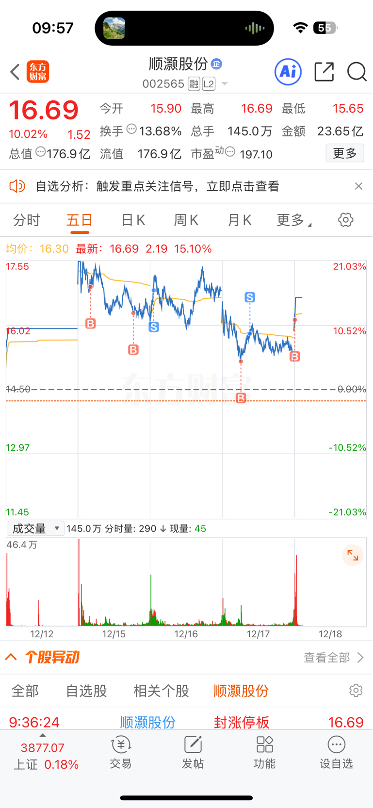 $顺灏股份(SZ002565)$ 今天真强,吸了大麻,加仓干