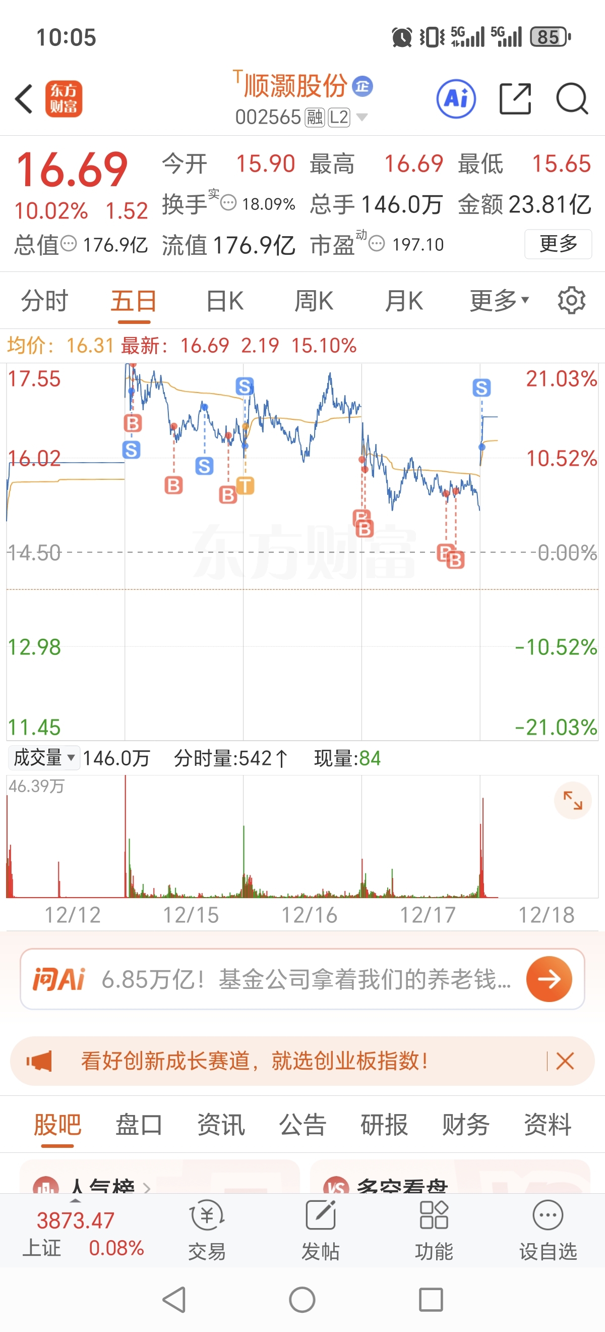 $顺灏股份(SZ002565)$ 昨天满仓你,果然主线暴力反弹。龙洲放人日,就是航天回暖,没想到这么强。