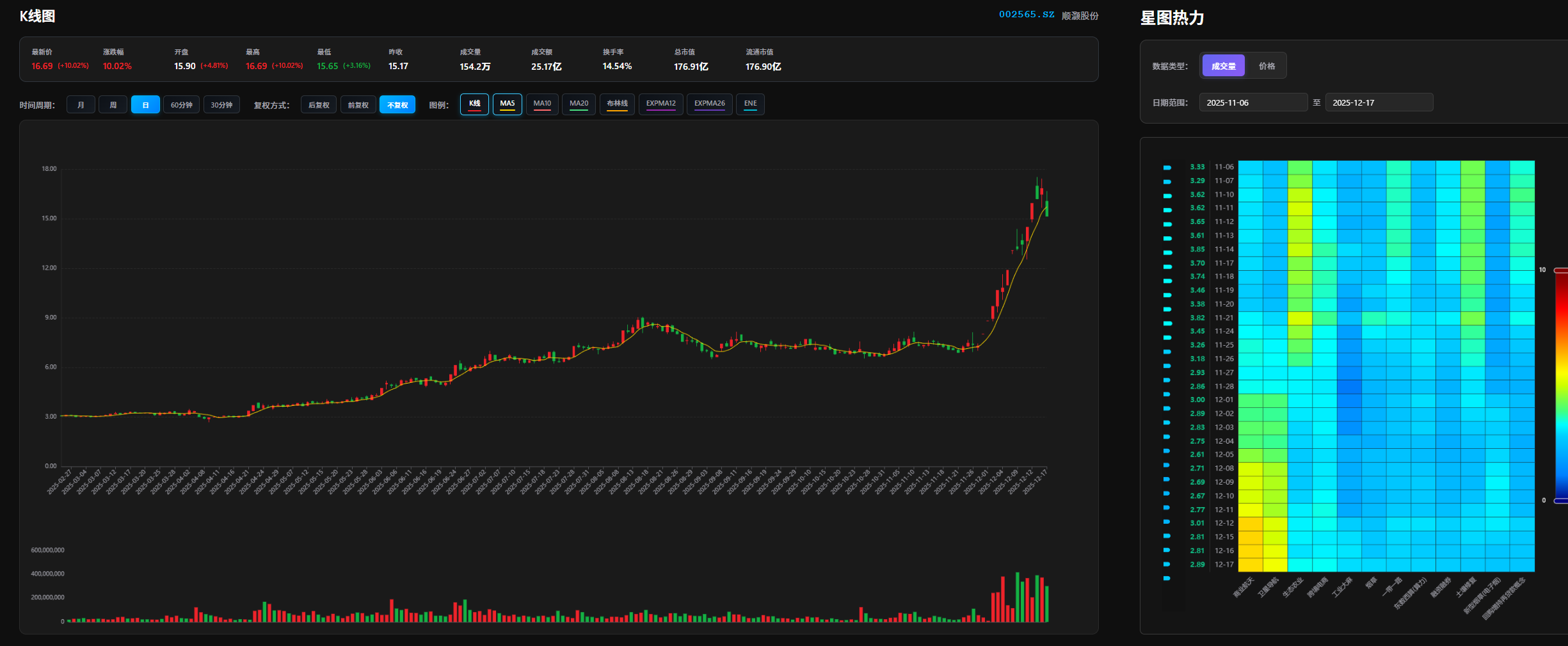 1. 热力图左边数值显示大盘情绪小幅回暖至2.89,大家可以小仓位进场。2.第二张个股热力图,怎么感觉商业航天板块个股热力图都是这样?3.最后今日六脉神剑还是两个红的,大家不要追高冲动。