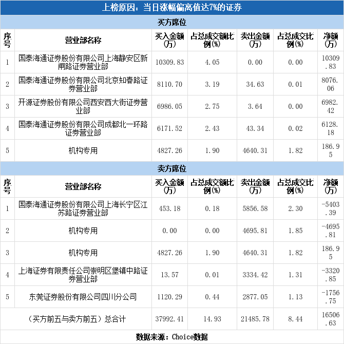 多主力现身龙虎榜,顺灏股份涨停(12-18)