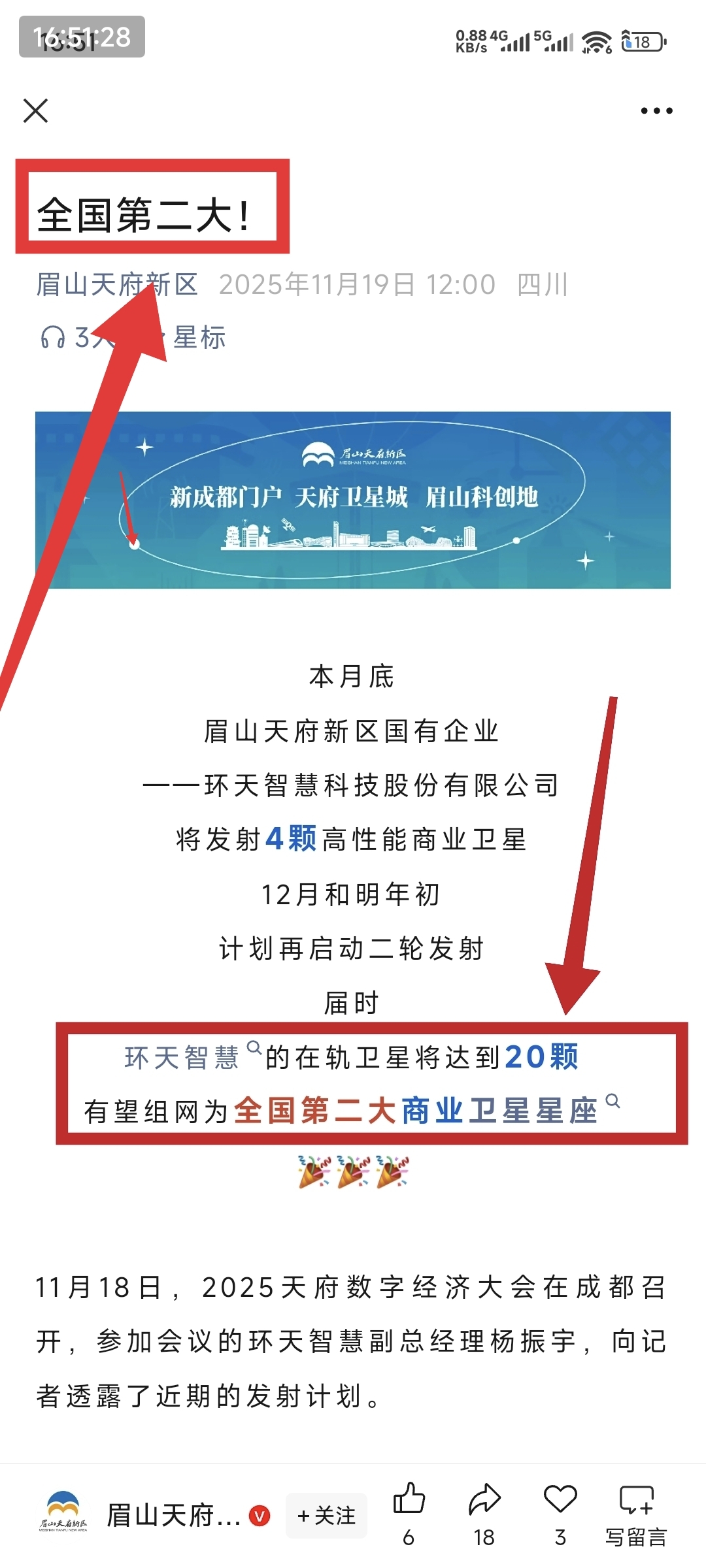 华体科技参股的全国第二大的环天星座也要上市了!顺灏股份是商业航天参股炒作第一股,华体可能要成为商业航天上市参股第一股!证监会前几天说加快科创板“1+6”改革举措落地,这个6就包括支持商业航天企业!