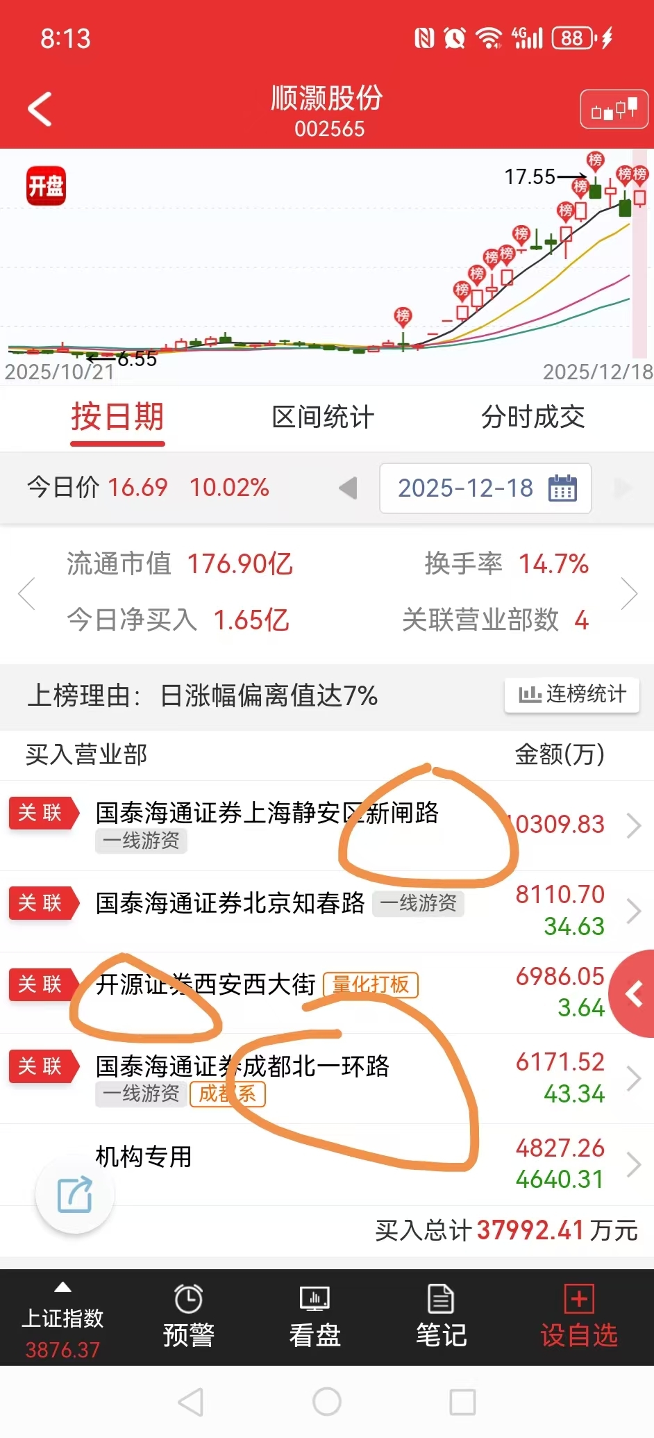 $顺灏股份(SZ002565)$ 昨天的龙虎榜,看见这三个砸总,今天根本不敢进