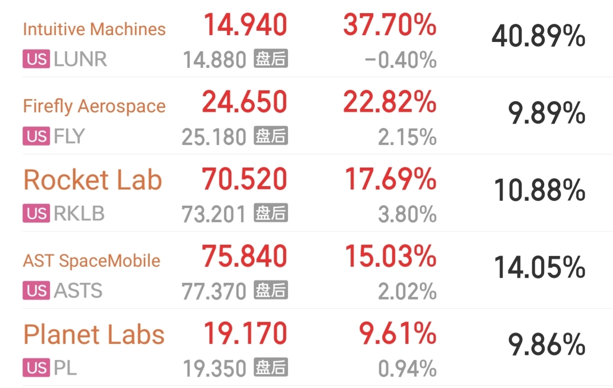 美股商业航天涨破天了,周一直接起爆