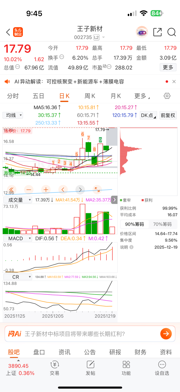 温馨提示: 1.根据《证券法》规定,禁止编造、传播虚假信息或者误导性信息,扰乱证券市场;2.用户在本社区发表的所有资料、言论等仅代表个人观点,与本网站立场无关,不对您构成任何投资建议。用户应基于自己的独立判断,自行决定证券投资并承担相应风险。《东方财富社区管理规定》