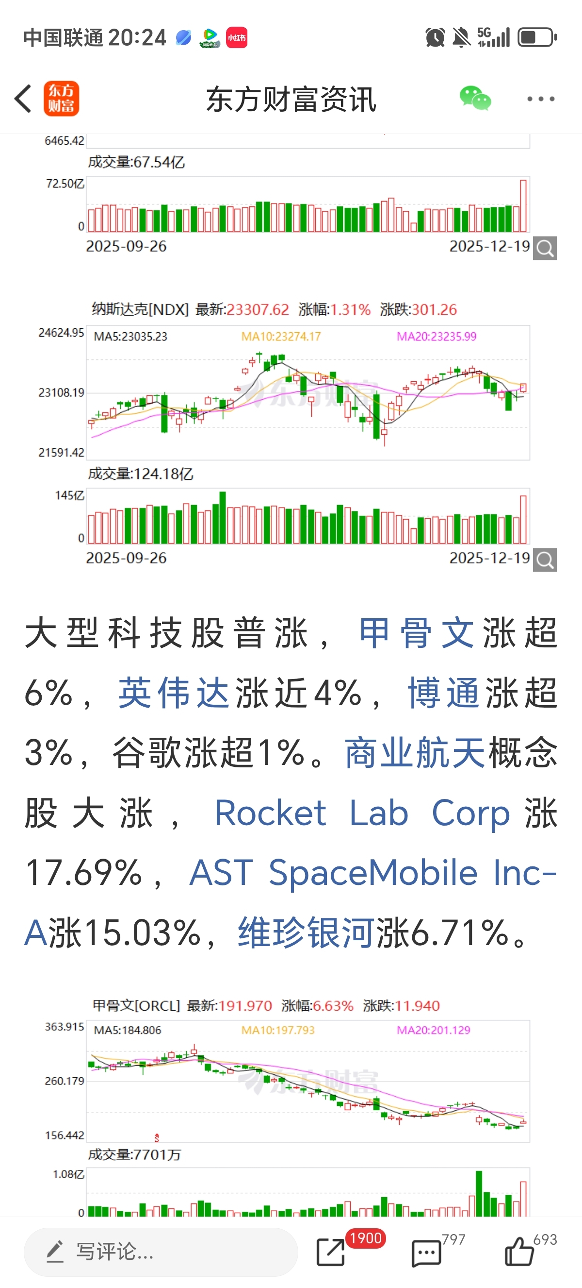 $顺灏股份(SZ002565)$ $航天发展(SZ000547)$ $航天动力(SH600343)$ 米国商业航天也大涨,周一看来还得接着奏乐接着舞呀。这一波跨年题材主线逻辑也是没谁了。12月火箭发射月。明年也是各种航天计划。拿稳了 别卖飞了