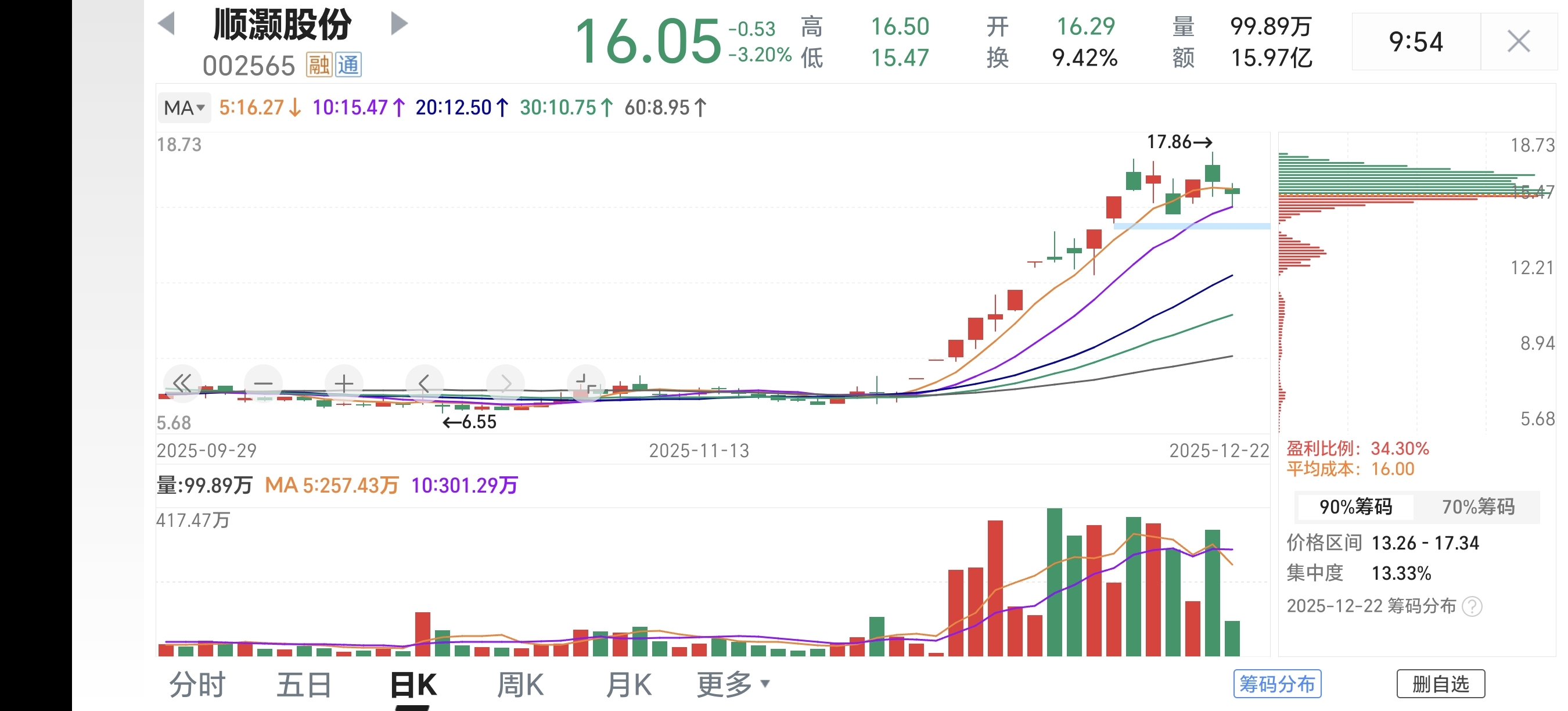 $顺灏股份(SZ002565)$ 我不知道会不会看,根据筹码峰,底部筹码跑光了,是不是这样