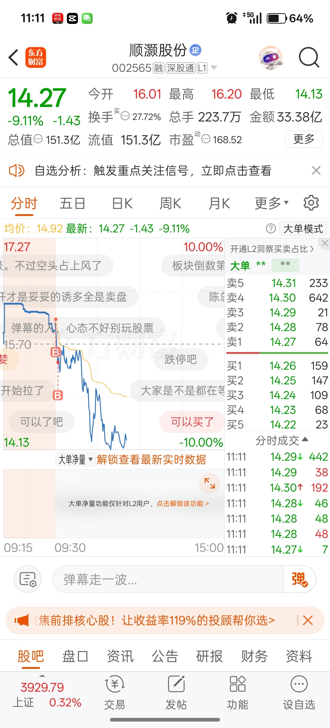 $顺灏股份(SZ002565)$ 把我挂山顶了