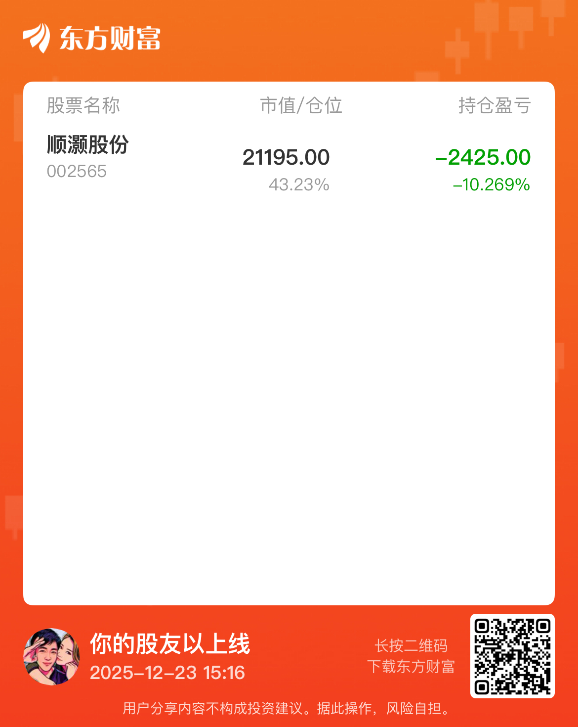 今作:操作比较牛直接跌停,刚在海发展吃了19个点的面,跑这里给我礼物