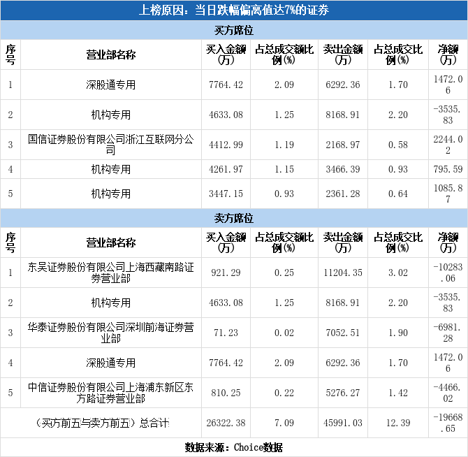 多主力现身龙虎榜,顺灏股份跌停(12-23)